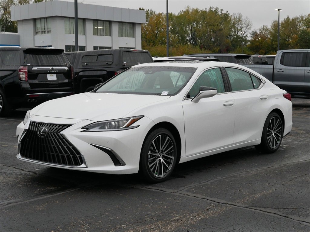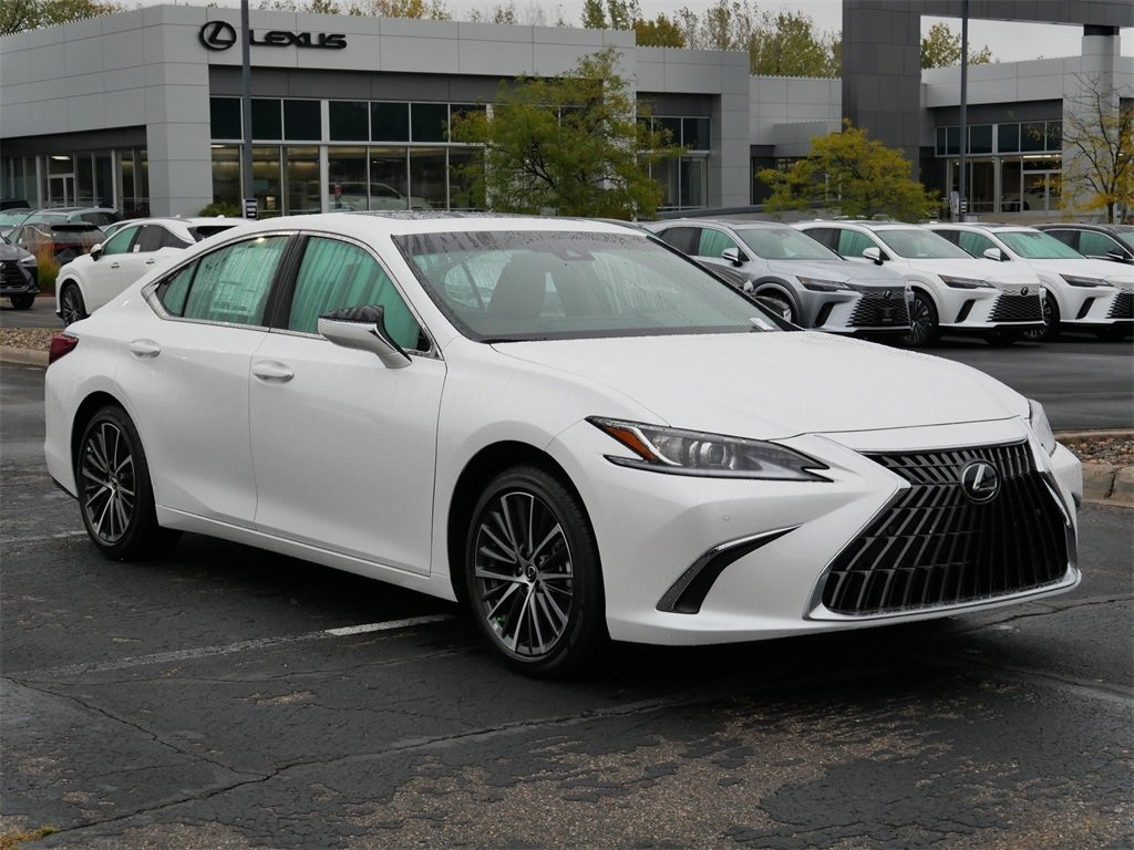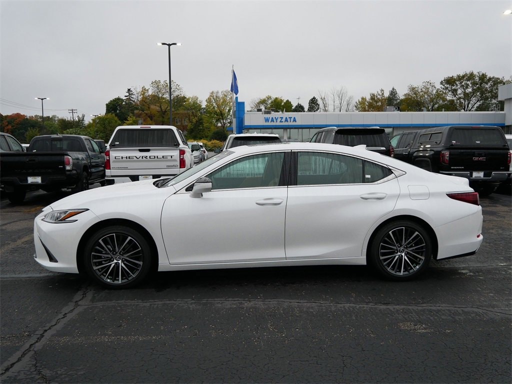 This ES is well equipped with Premium Package (Heated & Ventilated Seats, Heated Leather 3-Spoke Steering Wheel, Intuitive Parking Assist w/Auto Braking, Lexus Memory System, Parking Support Alert/Brake, Perforated NuLuxe Seat Trim (LD), Power Tilt/Telescoping Steering Wheel, Rain Sensing Wipers, Windshield De-Icer, and Wireless Charger), Ld43 Palomino Artificial Leather, 10 Speakers, 4-Wheel Disc Brakes, ABS brakes, Air Conditioning, Alloy wheels, AM/FM radio: SiriusXM, Auto High-beam Headlights, Auto-dimming door mirrors, Auto-dimming Rear-View mirror, Automatic temperature control, Brake assist, Bumpers: body-color, Carpet Trunk Mat, Compass, Delay-off headlights, Driver door bin, Driver vanity mirror, Dual front impact airbags, Dual front side impact airbags, Electronic Stability Control, Emergency communication system, Exterior Parking Camera Rear, Four wheel independent suspension, Front anti-roll bar, Front Bucket Seats, Front Center Armrest, Front dual zone A/C, Front Power Seats, Front reading lights, Fully automatic headlights, Garage door transmitter: HomeLink, Hands-Free Power Open/Close Trunk, Heated door mirrors, Illuminated entry, Knee airbag, Leather Shift Knob, Leather steering wheel, Low tire pressure warning, Navigation, Navigation system: Drive Connect Cloud Navigation (subscription required), Occupant sensing airbag, Outside temperature display, Overhead airbag, Overhead console, Panic alarm, Passenger door bin, Passenger vanity mirror, Perforated NuLuxe Seat Trim, Power door mirrors, Power driver seat, Power moonroof, Power passenger seat, Power steering, Power windows, Premium Paint (PJ), Radio data system, Radio: Lexus Interface w/8 Touch Screen, Rear anti-roll bar, Rear reading lights, Rear seat center armrest, Rear side impact airbag, Rear window defroster, Remote keyless entry, Security system, Speed control, Speed-sensing steering, Steering wheel mounted audio controls, Tachometer, Telescoping steering wheel, Tilt steering wheel, Traction control, Trip computer, Turn signal indicator mirrors, Variably intermittent wipers, Wheels: 17 Twin-V-Spoke Alloy, Wheels: 18 Split-10-Spoke Two-Tone Alloy, and Wireless Apple CarPlay/Wireless Android Auto.