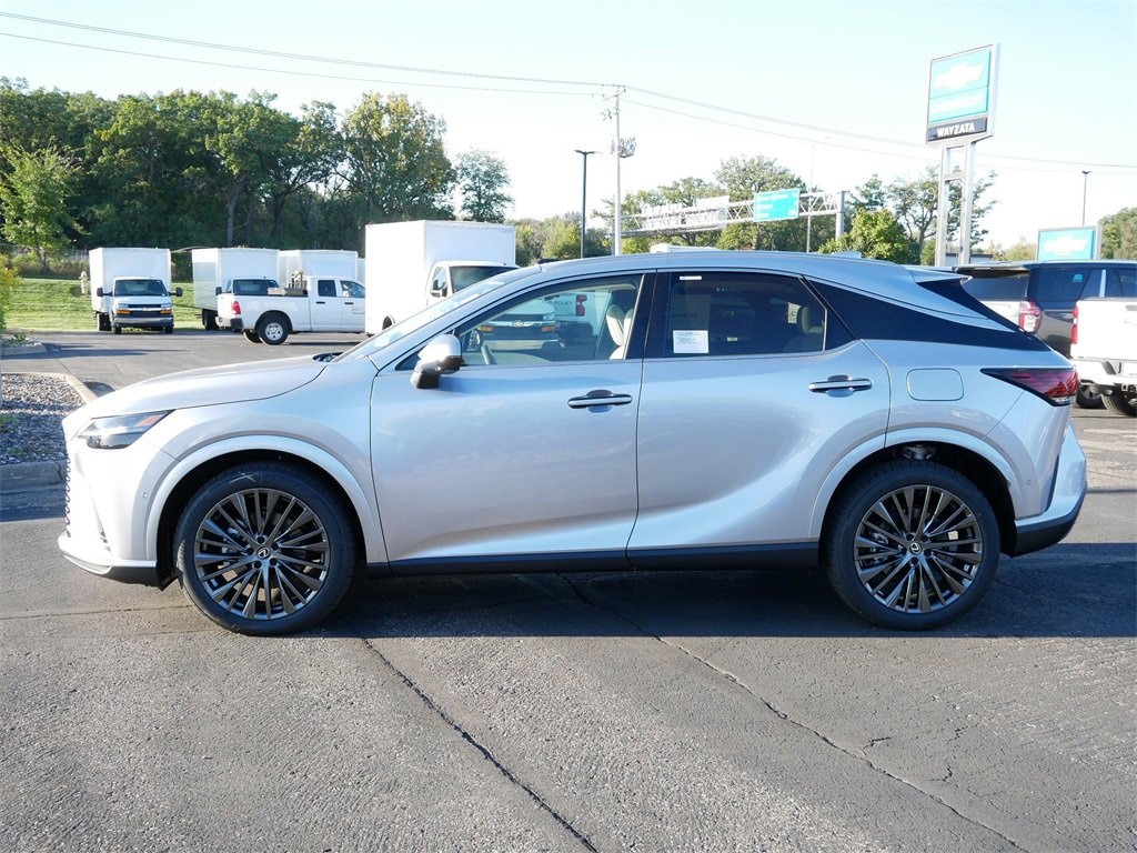 This RX is well equipped with Convenience Package, Luxury Package, Technology Package, AWD, La02 Macadamia Leather, 10-Way Power Driver & Fr Passenger Seat Adjusters, 12 Speakers, 4-Wheel Disc Brakes, ABS brakes, Air Conditioning, Alloy wheels, AM/FM radio: SiriusXM, Anti-whiplash front head restraints, Auto High-beam Headlights, Auto tilt-away steering wheel, Auto-dimming door mirrors, Auto-dimming Rear-View mirror, Automatic temperature control, Brake assist, Bumpers: body-color, Compass, Delay-off headlights, Driver door bin, Driver vanity mirror, Dual front impact airbags, Dual front side impact airbags, Electronic Stability Control, Emergency communication system: Safety Connect (10-year trial), Exterior Parking Camera Rear, Four wheel independent suspension, Front anti-roll bar, Front Bucket Seats, Front Center Armrest, Front dual zone A/C, Front fog lights, Front reading lights, Fully automatic headlights, Garage door transmitter: HomeLink, Genuine wood console insert, Headlight cleaning, Heads-Up Display, Heated & Ventilated Front Bucket Seats, Heated door mirrors, Heated front seats, Heated rear seats, Heated steering wheel, Illuminated entry, Leather Shift Knob, Leather steering wheel, Low tire pressure warning, Memory seat, Navigation System, Occupant sensing airbag, Outside temperature display, Overhead airbag, Overhead console, Panic alarm, Passenger door bin, Passenger vanity mirror, Power door mirrors, Power driver seat, Power Liftgate, Power moonroof, Power passenger seat, Power Rear Door w/Kick Sensor, Power steering, Power windows, Premium Paint (PJ), Radio data system, Radio: Lexus Interface w/14 HD Touchscreen Display, Radio: Lexus Interface w/Mark Levinson Audio, Rain sensing wipers, Rear air conditioning, Rear anti-roll bar, Rear reading lights, Rear seat center armrest, Rear side impact airbag, Rear window defroster, Rear window wiper, Remote keyless entry, Security system, Semi-Aniline Leather Fineskin Seat Trim, Speed control, Speed-sensing steering, Split folding rear seat, Spoiler, Steering wheel memory, Steering wheel mounted audio controls, Tachometer, Telescoping steering wheel, Tilt steering wheel, Traction control, Trip computer, Turn signal indicator mirrors, Variably intermittent wipers, Ventilated front seats, Ventilated rear seats, Wheels: 21 20-Spoke Alloy, and Wireless Apple CarPlay/Wireless Android Auto.