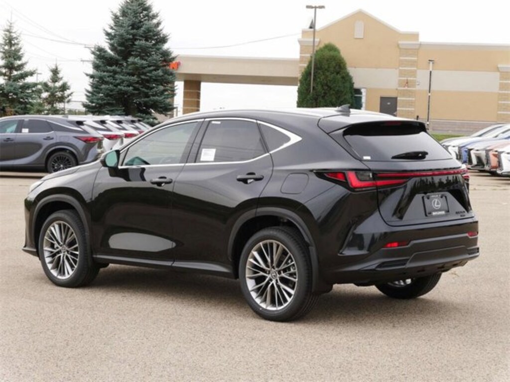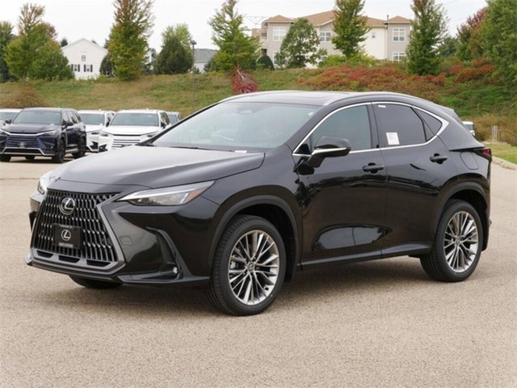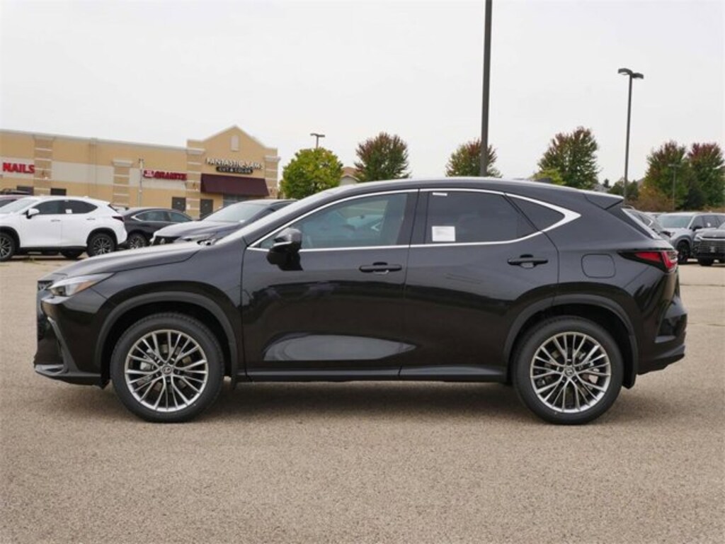 This NX is well equipped with Accessory Package (2T) (All-Weather Cargo Mat and All-Weather Floor Liners), Cold Area Package (Heated Steering Wheel), Premium Package, 10 Speakers, 20 Wheels, 4-Wheel Disc Brakes, ABS brakes, Air Conditioning, Alloy Wheel Locks w/Triple Nickel Chrome Plating, Alloy wheels, AM/FM radio: SiriusXM, Auto High-beam Headlights, Auto tilt-away steering wheel, Auto-dimming door mirrors, Auto-dimming Rear-View mirror, Automatic temperature control, Black Emblem Overlays, Brake assist, Bumpers: body-color, Cargo Net, Delay-off headlights, Door Edge Film by 3M, Driver door bin, Driver vanity mirror, Dual front impact airbags, Dual front side impact airbags, Electronic Stability Control, Emergency communication system: Safety Connect (up to 10-year trial subscription included), Exterior Parking Camera Rear, Four wheel independent suspension, Front anti-roll bar, Front Bucket Seats, Front Center Armrest, Front dual zone A/C, Front fog lights, Front reading lights, Fully automatic headlights, Garage door transmitter: HomeLink, Heated & Ventilated Front Seats, Heated door mirrors, Heated front seats, Illuminated Door Sills w/Lexus Logo, Illuminated entry, Key Gloves w/Embossed Lexus Logo, Knee airbag, Leather Shift Knob, Leather steering wheel, Lexus Interface w/14 Touchscreen Display, Lexus Interface w/9.8 Touchscreen Display, Low tire pressure warning, Memory seat, Mudguards, Navigation system: Drive Connect Cloud Navigation (subscription required), NuLuxe Seat Trim, Occupant sensing airbag, Outside temperature display, Overhead airbag, Overhead console, Panic alarm, Panoramic View Monitor, Passenger door bin, Passenger vanity mirror, Power door mirrors, Power driver seat, Power Liftgate, Power moonroof, Power passenger seat, Power steering, Power windows, Radio data system, Radio: 10-Speaker Lexus Premium Sound System, Rain sensing wipers, Rear anti-roll bar, Rear reading lights, Rear seat center armrest, Rear window defroster, Rear window wiper, Remote keyless entry, Security system, Speed control, Speed-sensing steering, Speed-Sensitive Wipers, Split folding rear seat, Spoiler, Steering wheel memory, Steering wheel mounted audio controls, Tachometer, Telescoping steering wheel, Thematic Ambient Illumination, Tilt steering wheel, Traction control, Trip computer, Turn signal indicator mirrors, Variably intermittent wipers, Ventilated front seats, Wheels: 18 15-Spoke Alloy, Wheels: 20 20-Spoke Alloy, Wireless Apple CarPlay/Wireless Android Auto, and Wireless Phone Charger.
