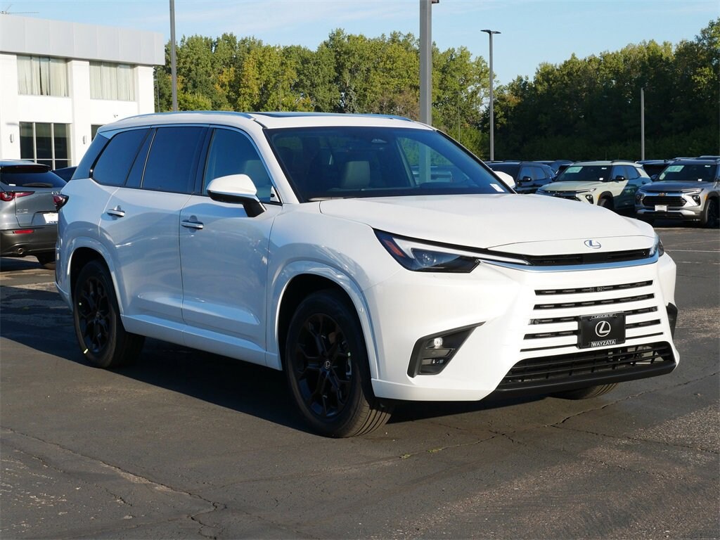 This TX is well equipped with Accessory Package (Z1) (Alloy Wheel Locks w/Triple Nickel Chrome Plating, Cargo Net, Carpet Cargo Mat w/Embroidered Logo, and Key Gloves w/Embossed Lexus Logo), Convenience Package (Digital Key, Front Cross-Traffic Alert & Lane Change Assist, and Traffic Jam Assist), 12 Speakers, 3rd row seats: split-bench, 4-Wheel Disc Brakes, ABS brakes, Air Conditioning, Alloy wheels, AM/FM radio, Apple CarPlay/Android Auto, Auto High-beam Headlights, Auto tilt-away steering wheel, Auto-dimming door mirrors, Auto-dimming Rear-View mirror, Automatic temperature control, Brake assist, Bumpers: body-color, Delay-off headlights, Driver door bin, Driver vanity mirror, Dual front impact airbags, Dual front side impact airbags, Electronic Stability Control, Emergency communication system: Safety Connect (5-year minimum), Exterior Parking Camera Rear, Four wheel independent suspension, Front anti-roll bar, Front Bucket Seats, Front Center Armrest, Front dual zone A/C, Front fog lights, Front reading lights, Fully automatic headlights, Garage door transmitter: HomeLink, Heated door mirrors, Heated front seats, Heated steering wheel, Illuminated entry, Knee airbag, Leather Shift Knob, Leather steering wheel, Lexus Interface w/14 Touchscreen Display, Low tire pressure warning, Navigation system: Drive Connect Cloud Navigation (3-year trial subscription included), NuLuxe Seat Trim, Occupant sensing airbag, Outside temperature display, Overhead airbag, Panic alarm, Passenger door bin, Passenger vanity mirror, Power door mirrors, Power driver seat, Power Liftgate, Power passenger seat, Power steering, Power windows, Radio data system, Radio: 12-Speaker Lexus Premium Sound System, Rain sensing wipers, Rear air conditioning, Rear anti-roll bar, Rear reading lights, Rear window defroster, Rear window wiper, Reclining 3rd row seat, Remote keyless entry, Security system, SiriusXM Trial Offering: 33 Months, Speed control, Speed-sensing steering, Split folding rear seat, Spoiler, Steering wheel mounted audio controls, Tachometer, Telescoping steering wheel, Tilt steering wheel, Traction control, Trip computer, Turn signal indicator mirrors, and Variably intermittent wipers.