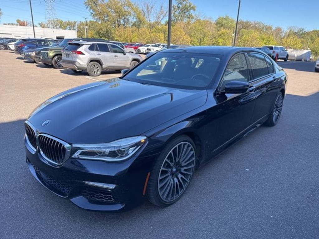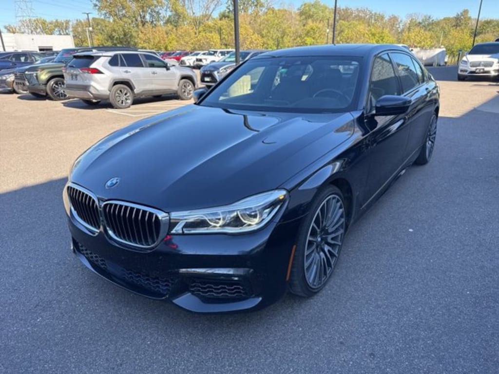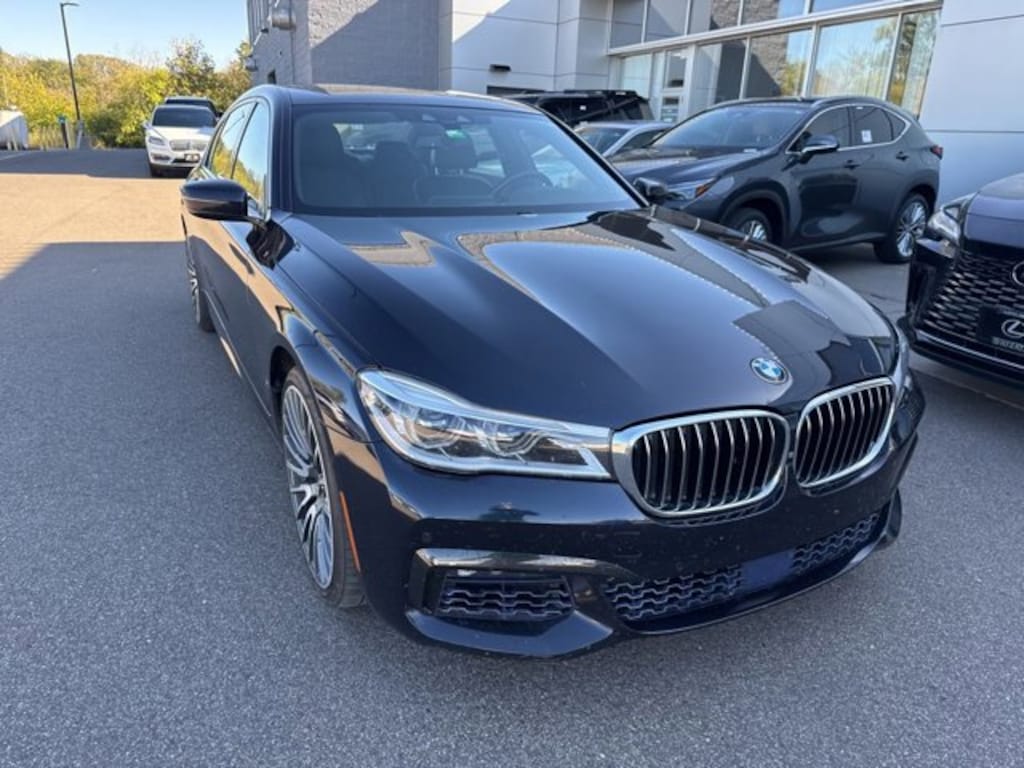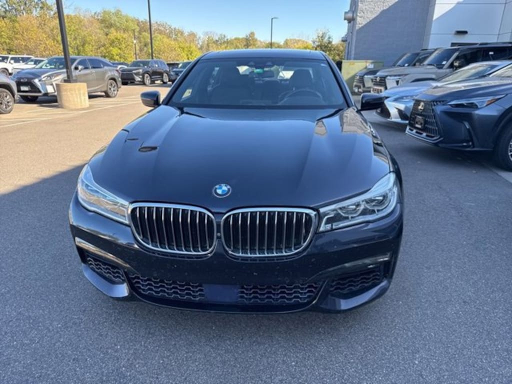 This 7 Series is well equipped with Ambient Air Package, Black Leather, 16 Speakers, 4-Wheel Disc Brakes, ABS brakes, Active Cruise Control w/Stop & Go, Active Driving Assistant Plus, Active Lane Keeping Assistant, Adaptive suspension, Aerodynamic Kit, Air Conditioning, Alloy wheels, AM/FM radio: SiriusXM, Anthracite Alcantara Headliner, Anti-whiplash front head restraints, Auto High-beam Headlights, Auto tilt-away steering wheel, Auto-dimming door mirrors, Auto-dimming Rear-View mirror, Auto-leveling suspension, Automatic temperature control, Blind Spot Detection, Bowers & Wilkins Diamond Surround Sound System, Brake assist, Bumpers: body-color, CD player, Daytime Pedestrian Protection, Delay-off headlights, Display Key, Door auto-latch, Driver door bin, Driver vanity mirror, Dual front impact airbags, Dual front side impact airbags, Electronic Stability Control, Emergency communication system: BMW Assist eCall, Exterior Parking Camera Rear, Fineline Black Wood Trim, Four wheel independent suspension, Front & Rear Heated Seats, Front anti-roll bar, Front Bucket Seats, Front Center Armrest, Front dual zone A/C, Front fog lights, Front Massaging Seats, Front reading lights, Front Ventilated Seats, Frontal Collision Warning, Fully automatic headlights, Garage door transmitter, Genuine wood console insert, Genuine wood dashboard insert, Genuine wood door panel insert, harman/kardon Surround Sound System, harman/kardon® Speakers, Head restraints memory, Heads-Up Display, Heated door mirrors, Heated Front Seats, Heated front seats, Heated Steering Wheel, Illuminated entry, Instrument Panel w/Nappa Leather Finish, Knee airbag, Lane Departure Warning System, Leather Shift Knob, Leather steering wheel, Low tire pressure warning, Memory seat, Multi-Contour Seats, Navigation System, Occupant sensing airbag, Outside temperature display, Overhead airbag, Overhead console, Panic alarm, Parking Assistant w/Active Park Distance Control, Passenger door bin, Passenger vanity mirror, Perforated Nappa Leather Upholstery, Power adjustable front head restraints, Power door mirrors, Power driver seat, Power moonroof, Power passenger seat, Power Side Window Shades w/Ambiance Light Pillar, Power steering, Power windows, Radio data system, Radio: AM/FM/HD w/In-Dash Single CD, Rain sensing wipers, Rear air conditioning, Rear anti-roll bar, Rear dual zone A/C, Rear reading lights, Rear seat center armrest, Rear Window Blind, Rear window defroster, Remote keyless entry, Satellite Radio w/1 Year Subscription, Security system, Shadowline Exterior Trim, Speed control, Speed Limit Info, Speed-sensing steering, Speed-Sensitive Wipers, Sport steering wheel, Steering wheel memory, Steering wheel mounted audio controls, Surround View w/3D View, Tachometer, Telescoping steering wheel, Tilt steering wheel, Traction control, Traffic Jam Assistant, Trip computer, Variably intermittent wipers, Weather band radio, Wheels: 19 x 8.5 Light Alloy Dbl-Spoke (Style 630), and Without Lines Designation Outside.