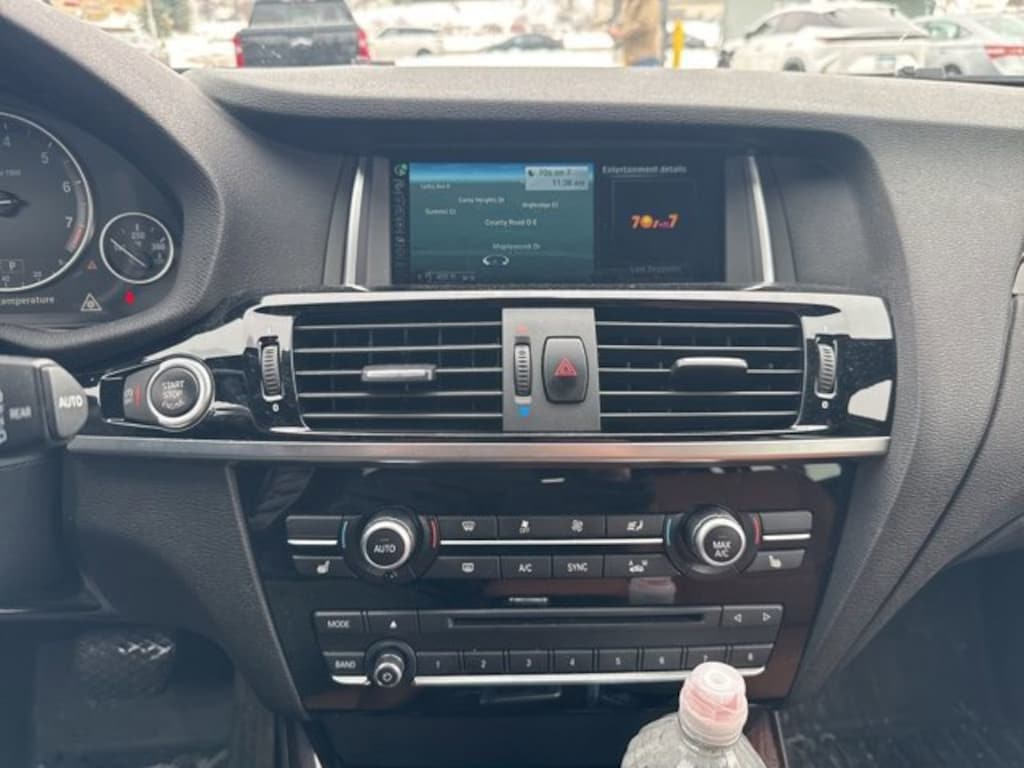 This X3 is well equipped with 8-Speed Automatic, 16 Speakers, 3.39 Axle Ratio, 4-Wheel Disc Brakes, ABS brakes, Advanced Real-Time Traffic Information, Aerodynamic Kit, Air Conditioning, Alloy wheels, AM/FM radio, Anthracite Headliner, Anti-Theft AM/FM Stereo CD/MP3 Player, Anti-whiplash front head restraints, Auto-dimming door mirrors, Auto-dimming Rear-View mirror, Automatic temperature control, BMW Online & BMW Apps, Bodyside moldings, Brake assist, Bumpers: body-color, Burl Walnut Wood Trim, CD player, Comfort Access Keyless Entry, Delay-off headlights, Driver door bin, Driver vanity mirror, Dual front impact airbags, Dual front side impact airbags, Electronic Stability Control, Emergency communication system: BMW Assist eCall, Four wheel independent suspension, Front anti-roll bar, Front Bucket Seats, Front Center Armrest, Front dual zone A/C, Front fog lights, Front reading lights, Fully automatic headlights, Garage door transmitter, Genuine wood console insert, Hands-Free Bluetooth & USB Audio Connection, harman/kardon Surround Sound System, harman/kardon® Speakers, HD Radio, Heated Front Seats, Heated Rear Seats, Heated Steering Wheel, High intensity discharge headlights: Bi-xenon, High-Gloss Roof Rails, Illuminated entry, Increased Top Speed Limiter, Leather steering wheel, Low tire pressure warning, Lumbar Support, M Steering Wheel, Memory seat, Navigation System, Occupant sensing airbag, Outside temperature display, Overhead airbag, Panic alarm, Park Distance Control, Passenger door bin, Passenger vanity mirror, Performance Control, Power door mirrors, Power driver seat, Power Front Bucket Seats, Power Liftgate, Power moonroof, Power passenger seat, Power steering, Power windows, Radio BMW Professional, Radio data system, Rain sensing wipers, Rear anti-roll bar, Rear fog lights, Rear Manual Side Window Shades, Rear reading lights, Rear seat center armrest, Rear window defroster, Rear window wiper, Rear-View Camera, Remote keyless entry, Remote Services, Retractable Headlight Washers, Roof rack: rails only, Satellite Radio, Security system, SensaTec Leatherette Upholstery, Shadowline Exterior Trim, Speed control, Speed-sensing steering, Speed-Sensitive Wipers, Split folding rear seat, Spoiler, Sport Seats, Sport steering wheel, Standard Suspension, Steering wheel mounted audio controls, Surround View, Tachometer, Telescoping steering wheel, Tilt steering wheel, Traction control, Trip computer, Turn signal indicator mirrors, Variably intermittent wipers, Wheels: 18 x 8.0 Double Spoke (Style 605), Wheels: 19 x 8.5 M Double Spoke (Style 622M), and Without Lines Designation Outside.