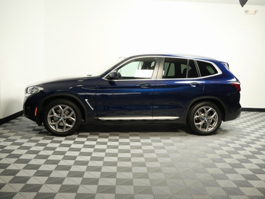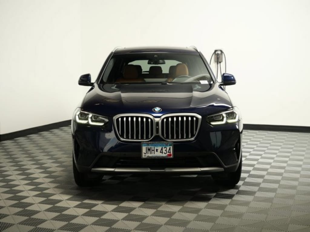 This X3 is well equipped with Connected Package Pro, 8-Speed Automatic Sport, 12 Speakers, 3.385 Axle Ratio, 4-Wheel Disc Brakes, ABS brakes, Air Conditioning, Alloy wheels, AM/FM Radio, AM/FM radio: SiriusXM, Apple CarPlay & Android Auto Compatibility, Auto High-beam Headlights, Auto-dimming door mirrors, Auto-dimming Rear-View mirror, Automatic temperature control, BMW Assist eCall, BMW TeleServices, Brake assist, Bumpers: body-color, ConnectedDrive Services, Delay-off headlights, Driver door bin, Driver vanity mirror, Dual front impact airbags, Dual front side impact airbags, Electronic Stability Control, Emergency communication system: BMW Assist eCall, Enhanced USB & Bluetooth w/Smartphone Integration, Exterior Parking Camera Rear, Four wheel independent suspension, Front anti-roll bar, Front Bucket Seats, Front Center Armrest, Front dual zone A/C, Front reading lights, Fully automatic headlights, Garage door transmitter, Genuine wood dashboard insert, Genuine wood door panel insert, Heated door mirrors, Hi-Fi Sound System, Illuminated entry, Knee airbag, Low tire pressure warning, Memory seat, Navigation, Navigation System, Occupant sensing airbag, Outside temperature display, Overhead airbag, Panic alarm, Passenger door bin, Passenger vanity mirror, Perforated SensaTec Upholstery, Power door mirrors, Power driver seat, Power Front Seats, Power Liftgate, Power passenger seat, Power steering, Power windows, Radio data system, Rain sensing wipers, Rear air conditioning, Rear anti-roll bar, Rear reading lights, Rear seat center armrest, Rear window defroster, Rear window wiper, Remote keyless entry, Security system, SiriusXM Satellite Radio, Speed control, Speed-sensing steering, Speed-Sensitive Wipers, Split folding rear seat, Spoiler, Sport Seats, Sport steering wheel, Steering wheel mounted audio controls, Tachometer, Telescoping steering wheel, Tilt steering wheel, Traction control, Trip computer, Turn signal indicator mirrors, Variably intermittent wipers, Wheels: 19 x 7.5 Y-Spoke (Style 693), and WiFi Hotspot.