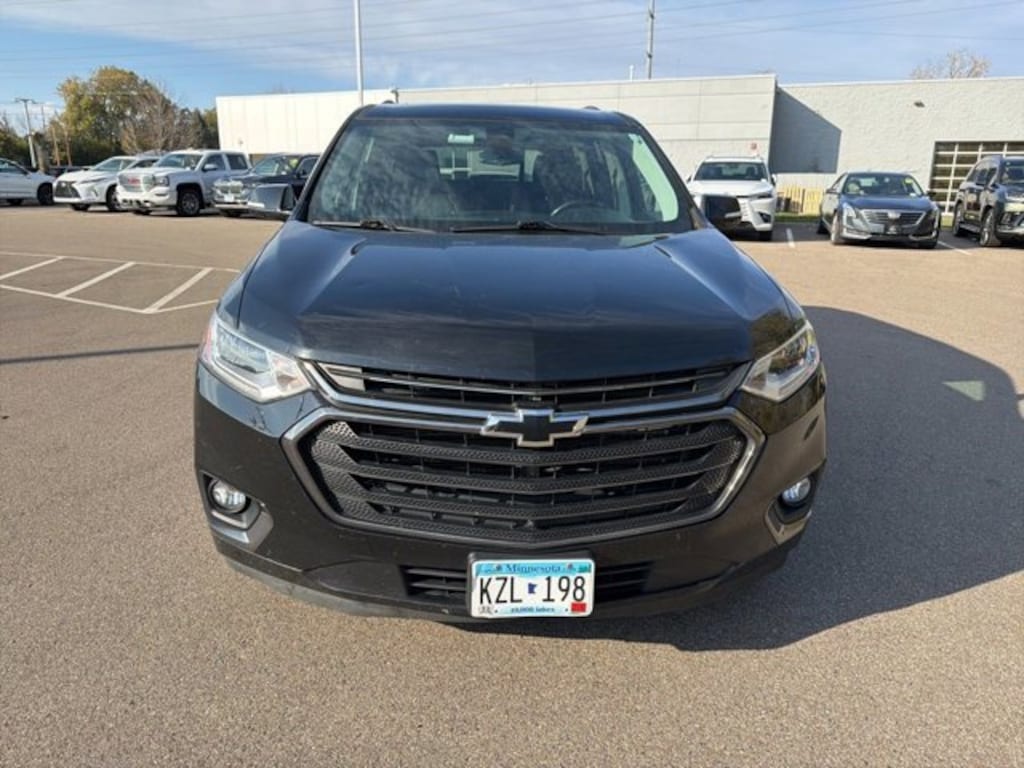 This Traverse is well equipped with Floor Liner Package (LPO) (1st & 2nd Row All-Weather Floor Liner (LPO), 3rd Row All-Weather Floor Liner (LPO), and Integrated Cargo Liner (LPO)), Front License Plate Bracket Mounting Package, Preferred Equipment Group 1LZ, Redline Edition (Black Door Handles, Dual SkyScape 2-Panel Power Sunroof, Ornamentation, and Wheels: 20 Gloss Black Painted Alum w/Red Stripes), Trailering Equipment (Heavy-Duty Cooling System), AWD, 10 Speakers, 3.49 Axle Ratio, 3rd row seats: split-bench, 4-Wheel Disc Brakes, 7-Passenger Seating (2-2-3 Seating Configuration), ABS brakes, Air Conditioning, Alloy wheels, AM/FM radio: SiriusXM, Apple CarPlay/Android Auto, Auto High-beam Headlights, Auto-dimming door mirrors, Auto-dimming Rear-View mirror, Automatic temperature control, Bose Premium 10-Speaker Audio System Feature, Brake assist, Bumpers: body-color, Compass, Delay-off headlights, Driver door bin, Driver vanity mirror, Dual front impact airbags, Dual front side impact airbags, Electronic Stability Control, Emergency communication system, Four wheel independent suspension, Front anti-roll bar, Front Bucket Seats, Front Center Armrest, Front dual zone A/C, Front fog lights, Front reading lights, Fully automatic headlights, Garage door transmitter, Heated door mirrors, Heated front seats, Heated rear seats, Heated steering wheel, Illuminated entry, Low tire pressure warning, Memory seat, Navigation System, Occupant sensing airbag, Outside temperature display, Overhead airbag, Overhead console, Panic alarm, Passenger door bin, Passenger vanity mirror, Perforated Leather-Appointed Seat Trim, Power door mirrors, Power driver seat, Power Liftgate, Power passenger seat, Power steering, Power windows, Premium audio system: Chevrolet MyLink, Radio data system, Radio: Chevrolet Infotainment AM/FM Stereo w/Navigation, Rear air conditioning, Rear anti-roll bar, Rear reading lights, Rear window defroster, Rear window wiper, Remote keyless entry, Roof rack: rails only, Security system, SiriusXM Radio, Speed control, Speed-sensing steering, Spoiler, Steering wheel memory, Steering wheel mounted audio controls, Tachometer, Telescoping steering wheel, Tilt steering wheel, Traction control, Trip computer, Turn signal indicator mirrors, Variably intermittent wipers, Ventilated front seats, Voltmeter, and Wheels: 20 Argent Metallic Machine Faced Aluminum.