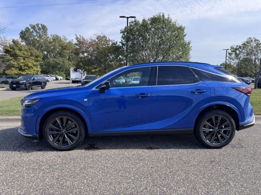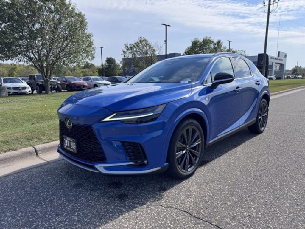 This RX is well equipped with L/Certified Certified, AWD, Black w/Black Open Pore w/Leather Seat Trim, ABS brakes, Active Cruise Control, Alloy wheels, Compass, Electronic Stability Control, Front dual zone A/C, Heated & Ventilated Front Bucket Seats, Heated door mirrors, Heated front seats, Illuminated entry, Low tire pressure warning, Power Liftgate, Power moonroof, Remote keyless entry, Traction control, 12 Speakers, 3.33 Axle Ratio, 4-Wheel Disc Brakes, 8-Way Power Driver & Front Passenger Seat Adjusters, Adaptive suspension, Air Conditioning, AM/FM radio: SiriusXM, Anti-whiplash front head restraints, Auto High-beam Headlights, Auto tilt-away steering wheel, Auto-dimming door mirrors, Auto-dimming Rear-View mirror, Auto-leveling suspension, Automatic temperature control, Brake assist, Bumpers: body-color, Delay-off headlights, Driver door bin, Driver vanity mirror, Dual front impact airbags, Dual front side impact airbags, Emergency communication system: Safety Connect (10-year trial), Exterior Parking Camera Rear, F SPORT NuLuxe Seat Trim, F SPORT White Steering Wheel w/Paddle, Finish Plate Door Inner Garnish, Four wheel independent suspension, Front anti-roll bar, Front Bucket Seats, Front Center Armrest, Front fog lights, Front reading lights, Front Seat Air Conditioner, Fully automatic headlights, Garage door transmitter: HomeLink, Genuine wood console insert, Heads-Up Display, Leather Shift Knob, Memory seat, Multi-Color Illuminated Entry System, Occupant sensing airbag, Outside temperature display, Overhead airbag, Overhead console, Panic alarm, Parking Support Alert/Brake, Passenger door bin, Passenger vanity mirror, Power door mirrors, Power driver seat, Power passenger seat, Power steering, Power windows, Radio data system, Radio: Lexus Interface w/9.8 HD Touchscreen Display, Rain sensing wipers, Rear air conditioning, Rear anti-roll bar, Rear reading lights, Rear seat center armrest, Rear side impact airbag, Rear window defroster, Rear window wiper, Security system, Speed control, Speed-sensing steering, Split folding rear seat, Spoiler, Sport steering wheel, Steering wheel memory, Steering wheel mounted audio controls, Tachometer, Telescoping steering wheel, Tilt steering wheel, Trip computer, Turn signal indicator mirrors, Variably intermittent wipers, Ventilated front seats, Wheels: 21, Wireless Apple CarPlay/Wireless Android Auto, and Wireless Charger.