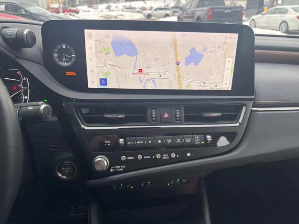 This ES is well equipped with 2.5L I4 DOHC 16V VVT, Palomino LEATHER, 10 Speakers, 4-Wheel Disc Brakes, ABS brakes, Air Conditioning, Alloy wheels, AM/FM radio: SiriusXM, Auto High-beam Headlights, Auto-dimming door mirrors, Auto-dimming Rear-View mirror, Automatic temperature control, Brake assist, Bumpers: body-color, Compass, Delay-off headlights, Driver door bin, Driver vanity mirror, Dual front impact airbags, Dual front side impact airbags, Electronic Stability Control, Emergency communication system, Exterior Parking Camera Rear, Four wheel independent suspension, Front anti-roll bar, Front Bucket Seats, Front Center Armrest, Front dual zone A/C, Front Power Seats, Front reading lights, Fully automatic headlights, Garage door transmitter: HomeLink, Heated door mirrors, Illuminated entry, Knee airbag, Leather Shift Knob, Leather steering wheel, Low tire pressure warning, Navigation system: Drive Connect Cloud Navigation (subscription required), Occupant sensing airbag, Outside temperature display, Overhead airbag, Overhead console, Panic alarm, Passenger door bin, Passenger vanity mirror, Perforated NuLuxe Seat Trim, Power door mirrors, Power driver seat, Power moonroof, Power passenger seat, Power steering, Power windows, Radio data system, Radio: Lexus Interface w/8 Touch Screen, Rear anti-roll bar, Rear reading lights, Rear seat center armrest, Rear side impact airbag, Rear window defroster, Remote keyless entry, Security system, Speed control, Speed-sensing steering, Steering wheel mounted audio controls, Tachometer, Telescoping steering wheel, Tilt steering wheel, Traction control, Trip computer, Turn signal indicator mirrors, Variably intermittent wipers, Wheels: 17 Twin-V-Spoke Alloy, and Wireless Apple CarPlay/Wireless Android Auto.