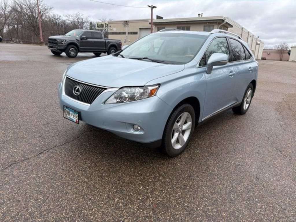 This RX is well equipped with AWD, Cloth, 18 x 7.5 5-Spoke Aluminum Wheels, 4-Wheel Disc Brakes, 4.398 Axle Ratio, 9 Speakers, ABS brakes, Air Conditioning, Alloy wheels, AM/FM radio: XM, Anti-whiplash front head restraints, Auto-dimming Rear-View mirror, Automatic temperature control, Bluetooth®, Brake assist, Bumpers: body-color, CD player, Compass, Delay-off headlights, Driver door bin, Driver vanity mirror, Dual front impact airbags, Dual front side impact airbags, Electronic Stability Control, Emergency communication system: Safety Connect, Fabric Seat Trim, Four wheel independent suspension, Front anti-roll bar, Front Bucket Seats, Front Center Armrest, Front dual zone A/C, Front fog lights, Front reading lights, Fully automatic headlights, Garage door transmitter: HomeLink, Genuine wood console insert, Genuine wood door panel insert, Heated door mirrors, Illuminated entry, Knee airbag, Leather steering wheel, Low tire pressure warning, Occupant sensing airbag, Outside temperature display, Overhead airbag, Overhead console, Panic alarm, Passenger door bin, Passenger vanity mirror, Power door mirrors, Power driver seat, Power passenger seat, Power steering, Power windows, Radio data system, Rear anti-roll bar, Rear reading lights, Rear seat center armrest, Rear side impact airbag, Rear window defroster, Rear window wiper, Remote keyless entry, Roof rack: rails only, Security system, Speed control, Speed-sensing steering, Split folding rear seat, Spoiler, Steering wheel mounted audio controls, Tachometer, Telescoping steering wheel, Tilt steering wheel, Traction control, Trip computer, Turn signal indicator mirrors, and Variably intermittent wipers.