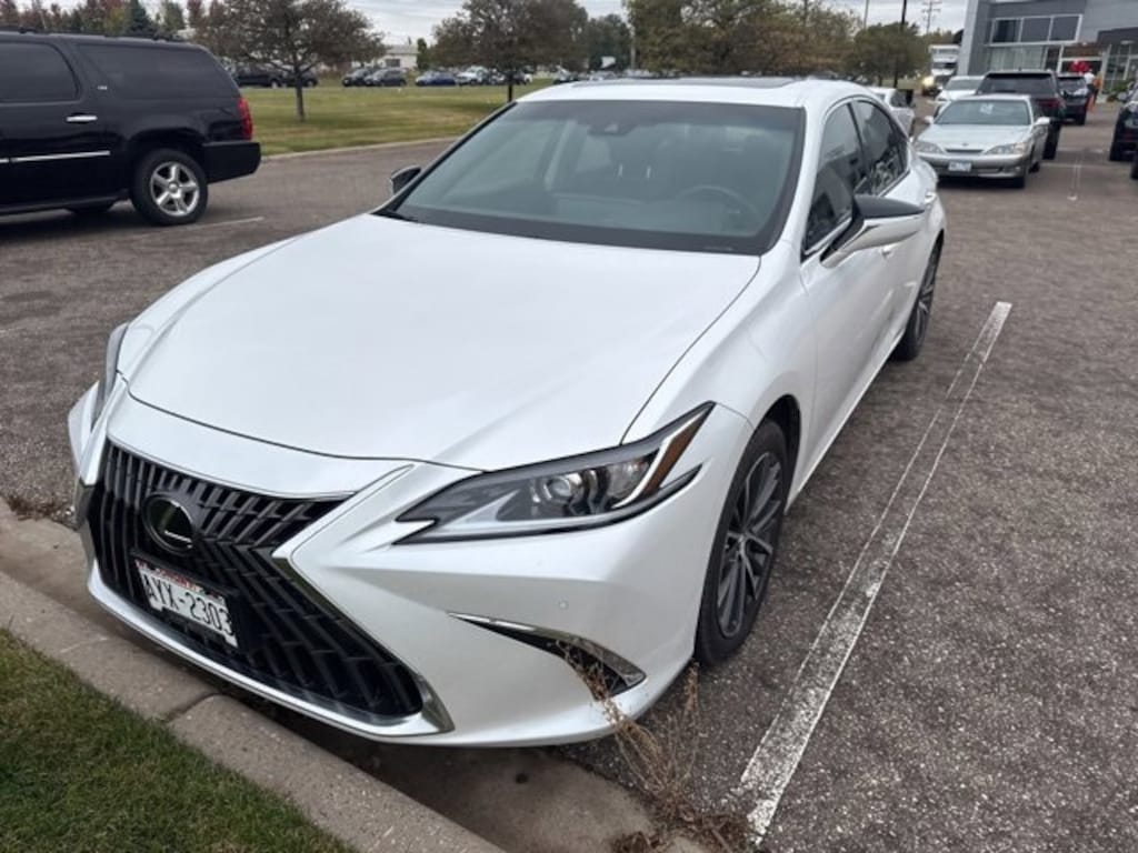 This ES is well equipped with Black w/Black Open Pore w/Perforated Leather Seat Trim, 10 Speakers, 10-Way Power Adjustable Front Seats, 4-Wheel Disc Brakes, ABS brakes, Air Conditioning, Alloy wheels, AM/FM radio: SiriusXM, Apple CarPlay/Android Auto, Auto High-beam Headlights, Auto-dimming door mirrors, Auto-dimming Rear-View mirror, Automatic temperature control, Brake assist, Bumpers: body-color, CD player, Compass, Delay-off headlights, Driver door bin, Driver vanity mirror, Dual front impact airbags, Dual front side impact airbags, Electronic Stability Control, Emergency communication system, Exterior Parking Camera Rear, Four wheel independent suspension, Front anti-roll bar, Front Bucket Seats, Front Center Armrest, Front dual zone A/C, Front reading lights, Fully automatic headlights, Garage door transmitter: HomeLink, Heated door mirrors, Illuminated entry, Knee airbag, Leather Shift Knob, Leather steering wheel, Low tire pressure warning, Occupant sensing airbag, Outside temperature display, Overhead airbag, Overhead console, Panic alarm, Passenger door bin, Passenger vanity mirror, Perforated NuLuxe Seat Trim, Power door mirrors, Power driver seat, Power moonroof, Power passenger seat, Power steering, Power windows, Radio data system, Radio: Lexus Multimedia System, Rear anti-roll bar, Rear reading lights, Rear seat center armrest, Rear side impact airbag, Rear window defroster, Remote keyless entry, Security system, Speed control, Speed-sensing steering, Steering wheel mounted audio controls, Tachometer, Telescoping steering wheel, Tilt steering wheel, Traction control, Trip computer, Turn signal indicator mirrors, Variably intermittent wipers, and Wheels: 17 x 7.5J Twin-V-Spoke Alloy.