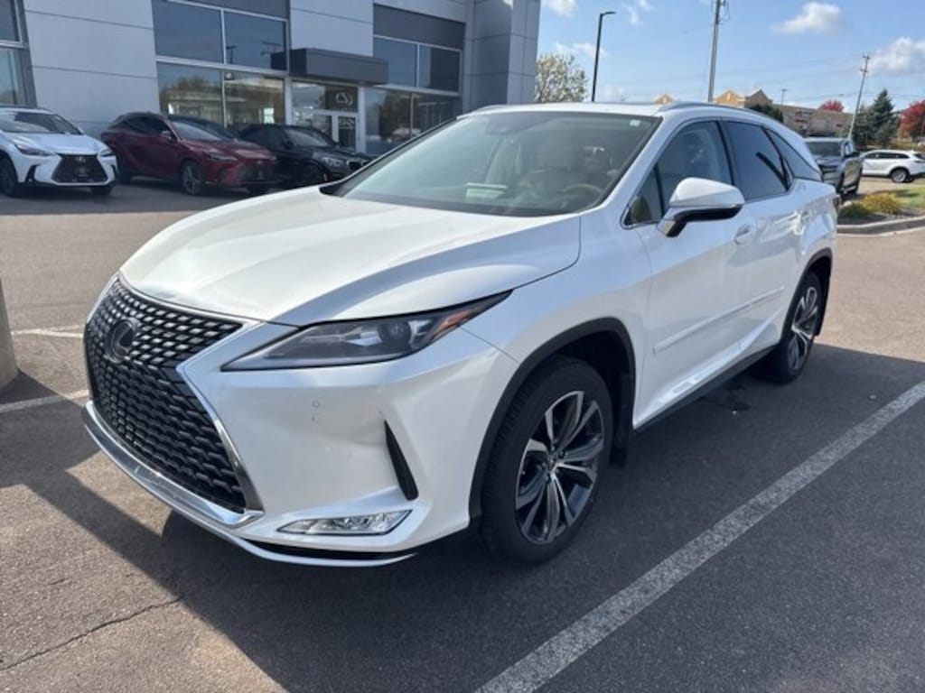 This RX is well equipped with Lexus Certified, Parchment w/Semi-Aniline Leather Seat Trim, 3.33 Axle Ratio, 3rd row seats: split-bench, 4-Wheel Disc Brakes, 9 Speakers, ABS brakes, Air Conditioning, Alloy wheels, AM/FM radio: SiriusXM, Anti-whiplash front head restraints, Apple CarPlay/Android Auto, Auto High-beam Headlights, Auto-dimming door mirrors, Auto-dimming Rear-View mirror, Automatic temperature control, Brake assist, Bumpers: body-color, CD player, Compass, Delay-off headlights, Driver door bin, Driver vanity mirror, Dual front impact airbags, Dual front side impact airbags, Electronic Stability Control, Emergency communication system, Exterior Parking Camera Rear, Four wheel independent suspension, Front anti-roll bar, Front Bucket Seats, Front Center Armrest, Front dual zone A/C, Front reading lights, Fully automatic headlights, Garage door transmitter: HomeLink, Genuine wood console insert, Genuine wood door panel insert, Heated door mirrors, Illuminated entry, Knee airbag, Leather Shift Knob, Leather steering wheel, Low tire pressure warning, NuLuxe Seat Trim, Occupant sensing airbag, Outside temperature display, Overhead airbag, Overhead console, Panic alarm, Passenger door bin, Passenger vanity mirror, Power door mirrors, Power driver seat, Power Liftgate, Power passenger seat, Power steering, Power windows, Radio data system, Radio: AM/FM/CD Lexus Display Audio, Rain sensing wipers, Rear air conditioning, Rear anti-roll bar, Rear reading lights, Rear seat center armrest, Rear side impact airbag, Rear window defroster, Rear window wiper, Reclining 3rd row seat, Remote keyless entry, Roof rack: rails only, Security system, Speed control, Speed-sensing steering, Split folding rear seat, Spoiler, Steering wheel mounted audio controls, Tachometer, Telescoping steering wheel, Tilt steering wheel, Traction control, Trip computer, Turn signal indicator mirrors, Variably intermittent wipers, and Wheels: 18 x 8.0 Split-5-Spoke Alloy.
